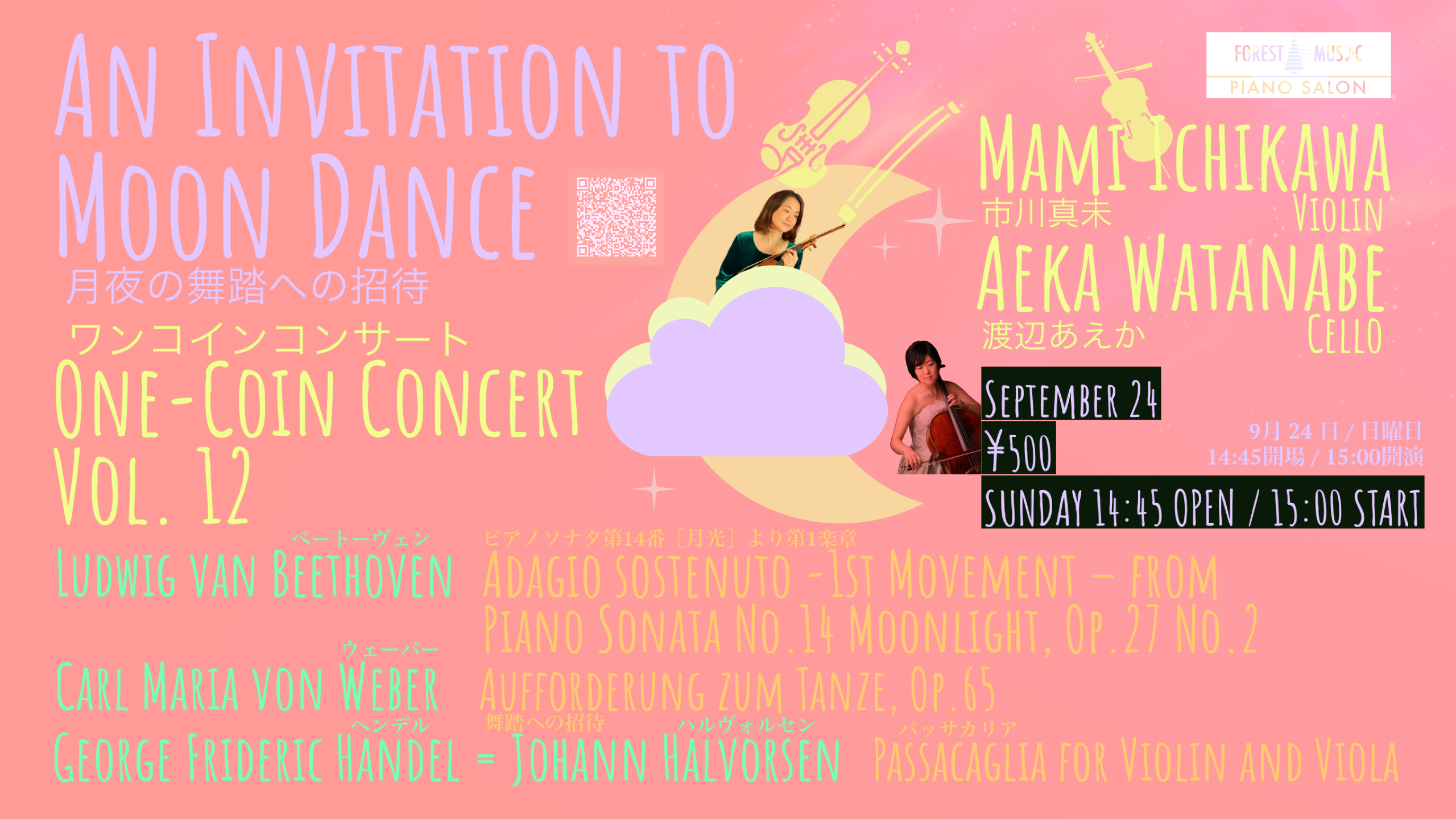 One-Coin Concert Vol. 12, Mami Ichikawa (Violin), Aeka Watanabe (Cello) “An Invitation to Moon Dance”