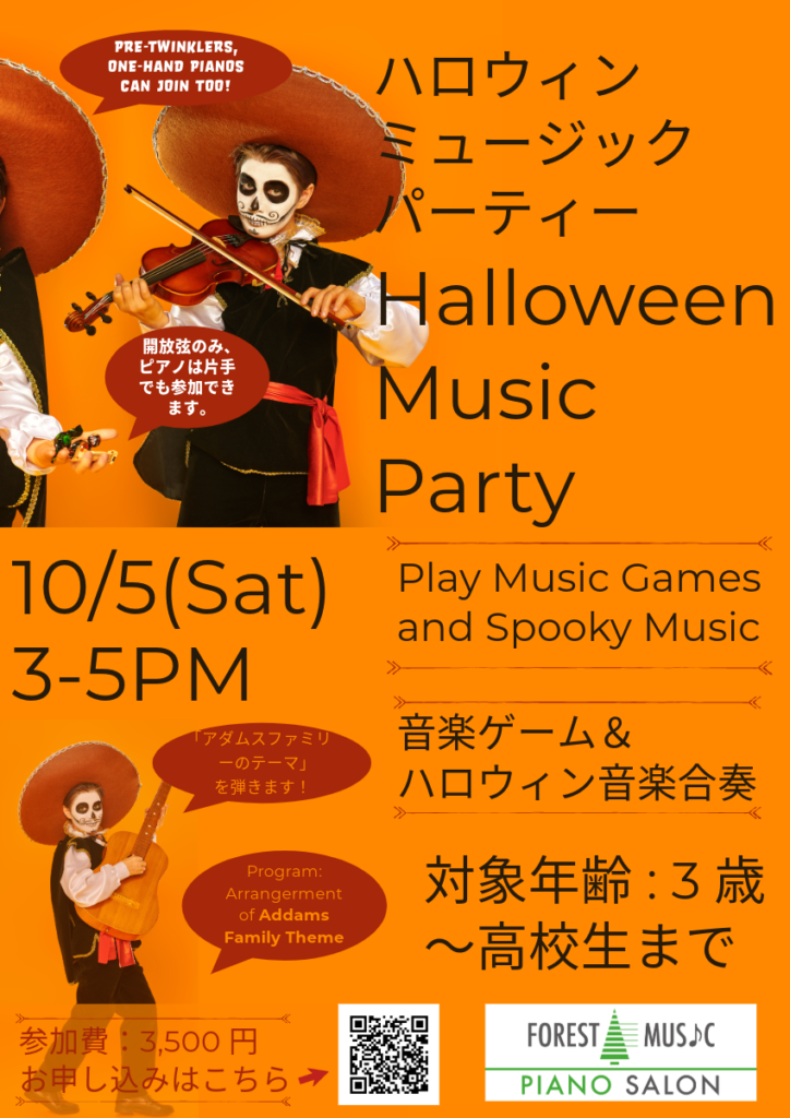 Forest Music Halloween Party for students! (for students from 3 years old to High Schoolers. Forest Music Members Only) Capacity: First 20 students