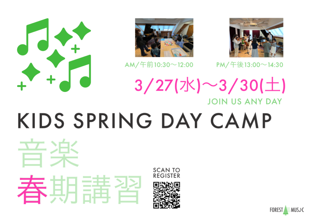 バイリンガルの講師陣が指導しますので、日本語が分からないお子様もご参加可能、インターナショナルな雰囲気が楽しめます。全レベル、3歳〜高校生まで(楽器経験1年以上)の皆様、フォレストミュージックで私達と楽しい夏の思い出を作りませんか?