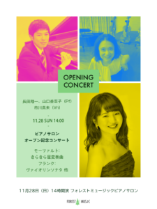 ピアノサロン・オープニングコンサート Vol.1:長田翔一(Pf), 山口香菜子(Pf), 市川真未(Vn)